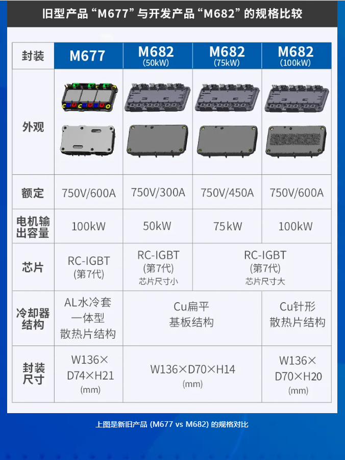 本次富士电机开发的IGBT模块“M682”,适用于50-100kW输出容量范围的轻型小型汽车电机设计。