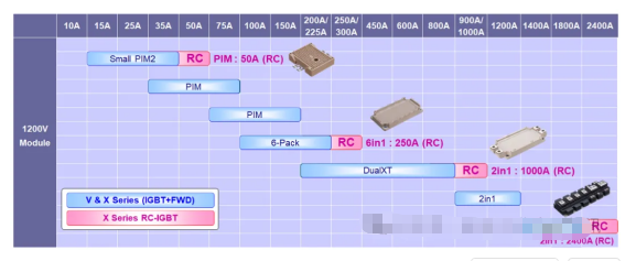 X系列已形成“标准IGBT+PIM+IPM”与“RC-IGBT+PIM+六合一”两大子家族,覆盖650V/50A–2400A、1200V/50A–2400A。2024–2025年富士发布1700V等级及SiN基板版本,单封装电流密度有望再提升20%,并集成温度/电流传感器,向“智能功率模块”演进。