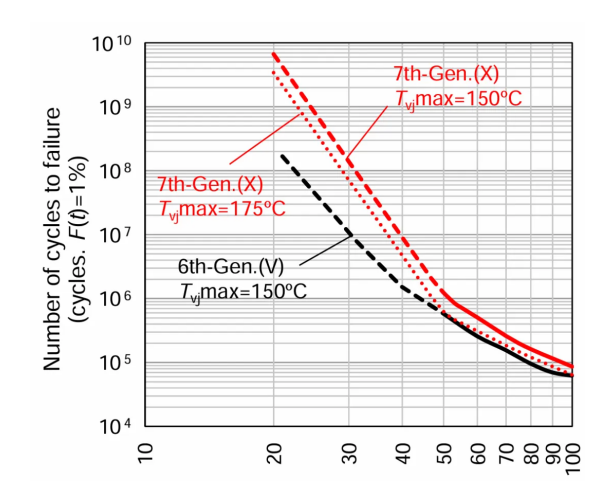 Tvjop≤175 °C,但随温度升高,功率循环寿命呈指数下降。推荐:
