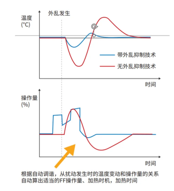 ■ 自带外部干扰抑制功能,能够针对可预测的外部干扰预先抑制温度变化。实现升温时间(40min→35min)与回温时间(15min→13min)的缩短。