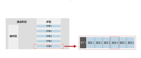 单台设备分为5个炉管,每个炉管分为6个温区,通过串级控制实现对腔体内部的控温。