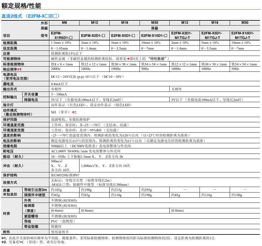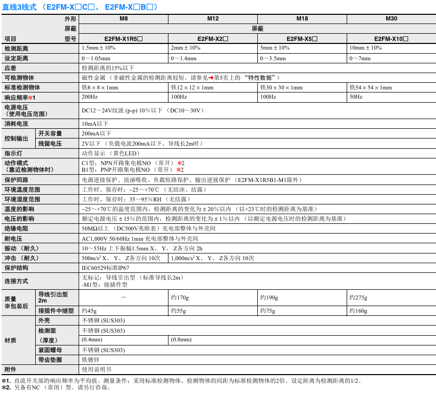 首页 欧姆龙 传感器 接近传感器 全不锈钢机架接近传感器E2FM 全不锈钢机架接近传感器E2FM 恶劣环境下也不易损坏的接近传感器 全不锈钢机架 耐铝碎屑 可嵌入安装至金属(铁)中 由欧洲Ecolab公司认证的耐化学药品性 备有导线引出型、直流3线NPN输出、氟树脂涂层型 有关详细信息,请参阅产品样本及其他相关文件:E2FM 产品样本 分类: 接近传感器 品牌: 欧姆龙 描述 用户评价 (0) 产品信息 评价 目前还没有评价 成为第一个“全不锈钢机架接近传感器E2FM” 的评价者取消回复您的邮箱地址不会被公开。 必填项已用 * 标注您的评级 * 评价… 完美 很好 普通 还行 极差 名称 *邮箱 *您的评价 * 在此浏览器中保存我的显示名称、邮箱地址和网站地址,以便下次评论时使用。 提交 相关产品 铝检测用(放大器内置型)E2EY 接近传感器 防溅型E2EQ 接近传感器 接近传感器E2B 接近传感器 耐油接近传感器E2ER / E2ERZ 接近传感器