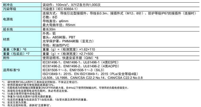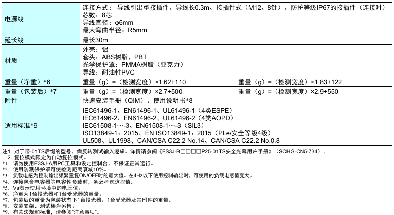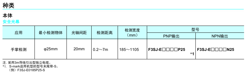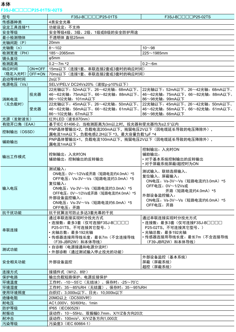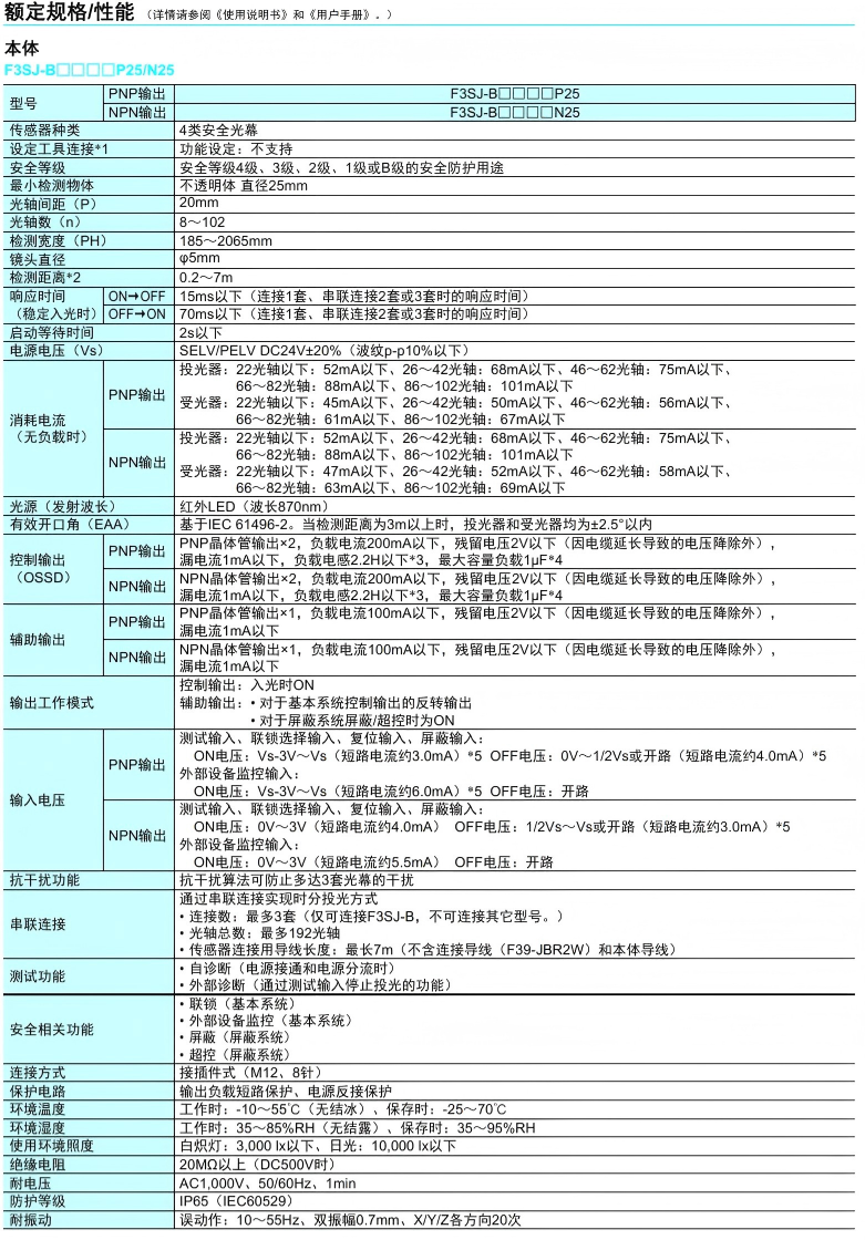 有关详细信息,请参阅产品样本及其他相关文件:F3SJ系列 产品样本