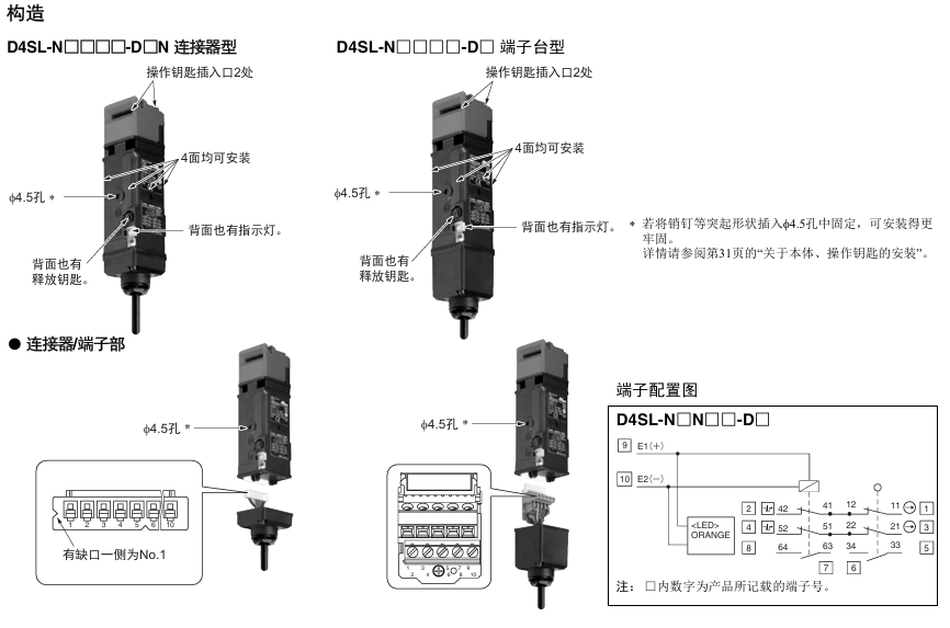 D4SL-N备有连接器方式及端子台方式2种。2种类型的本体及接线均为一触式拆装,大幅提高安装时的可操作性及维护作业效率。