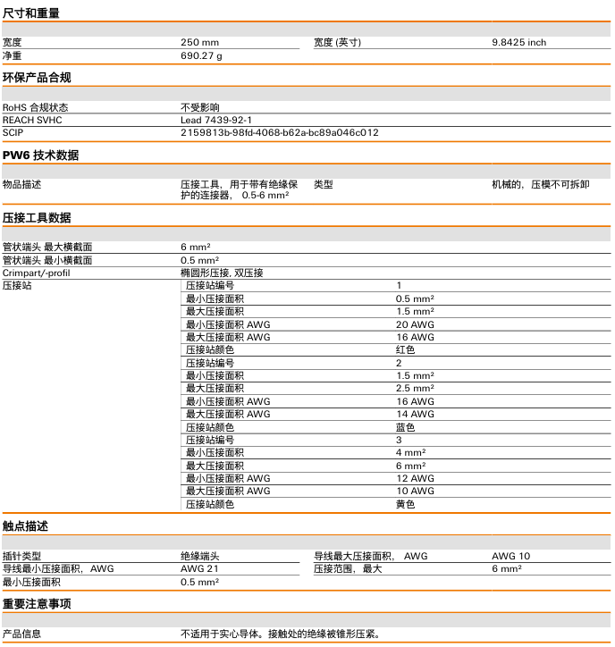 压接工具, 端头的压接工具, 0.5mm², 6mm², 椭圆形压接, 双压接