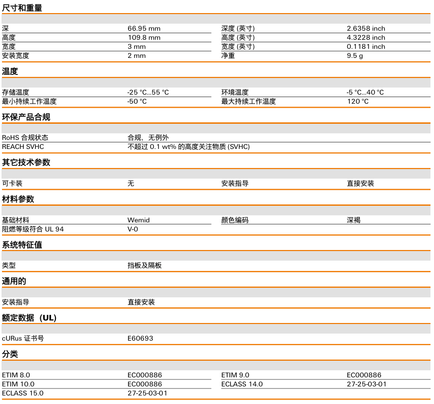 有关详细信息,请参阅产品样本及其他相关文件:隔板(端子) | WTW WF8 | 1780900000接线端子WTW WF8数据信息页
