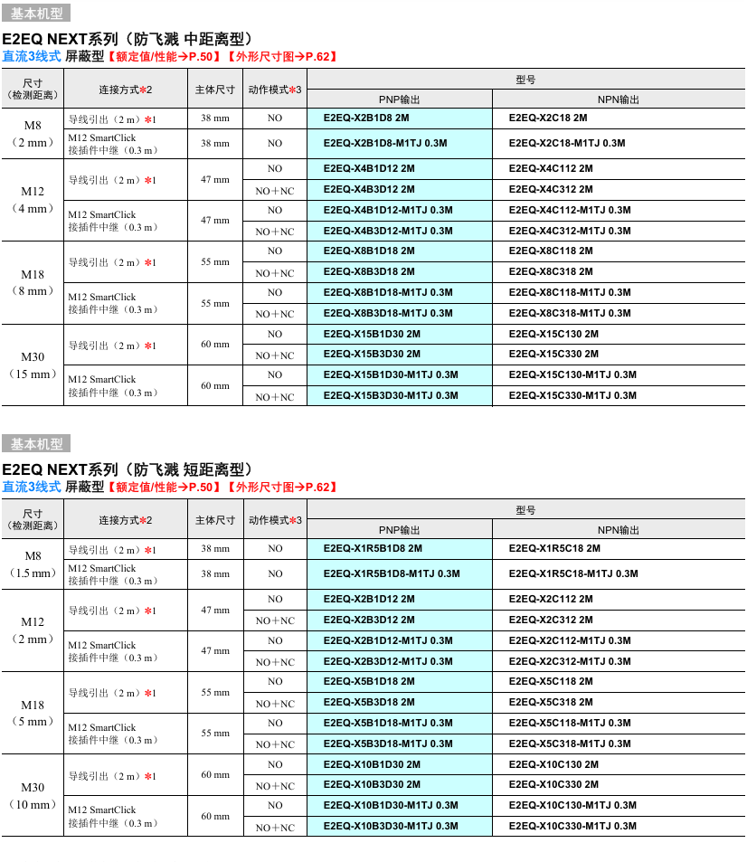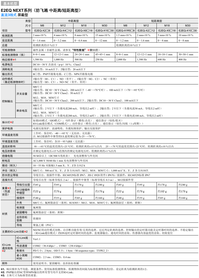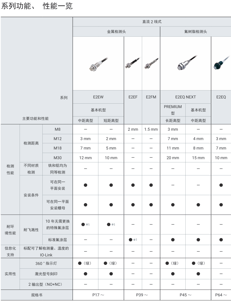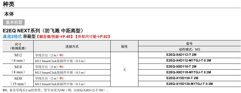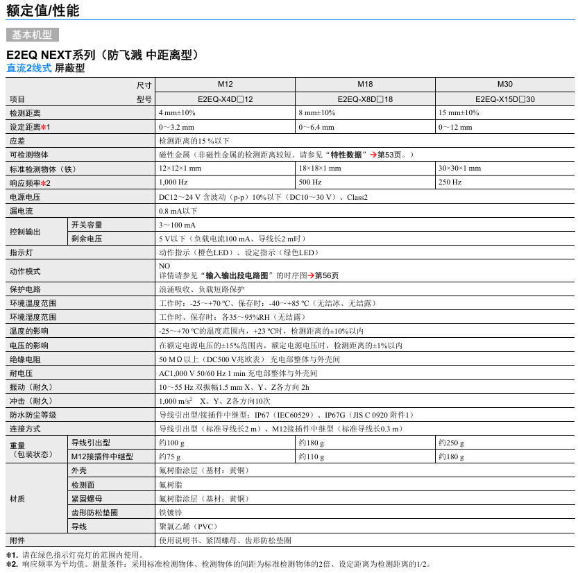 有关详细信息,请参阅产品样本及其他相关文件:E2EW/E2EQ NEXT系列 产品样本
