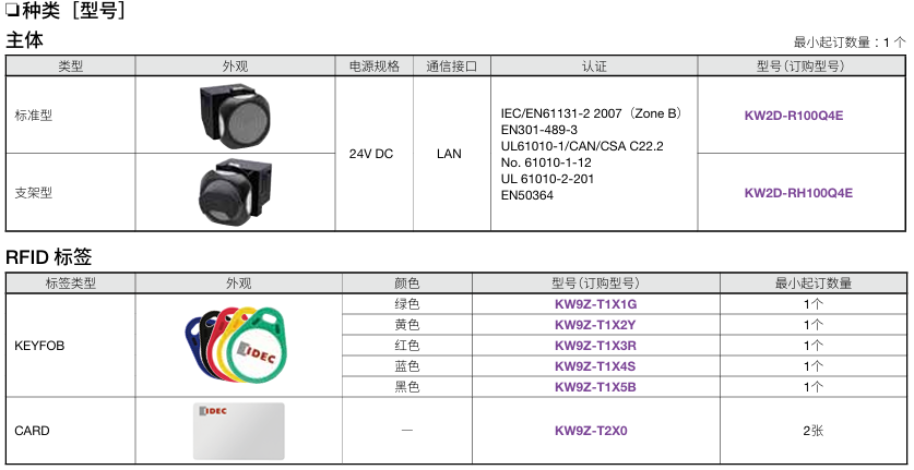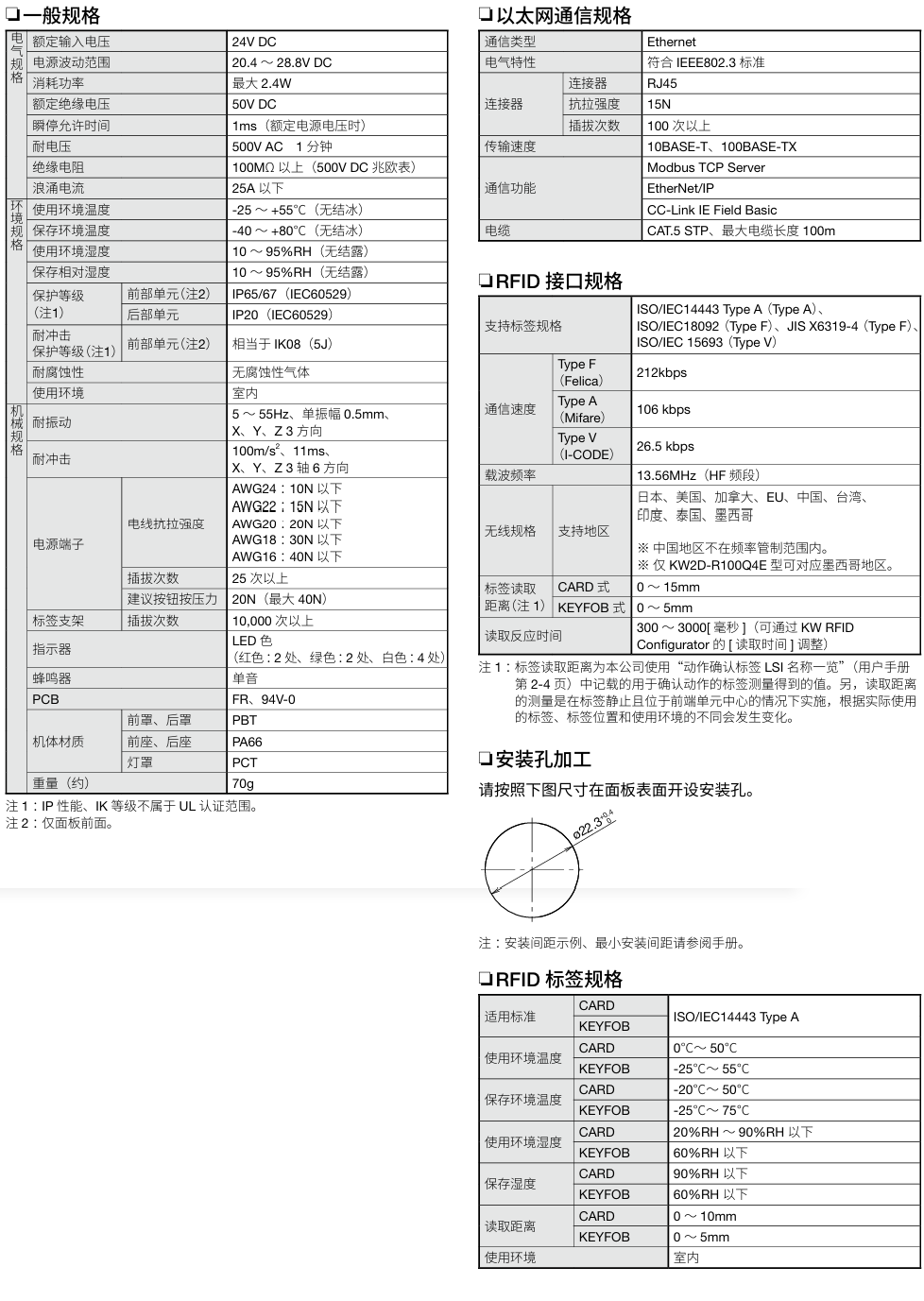 有关详细信息,请参阅产品样本及其他相关文件:Ø22 智能RFID阅读器KW2D型
