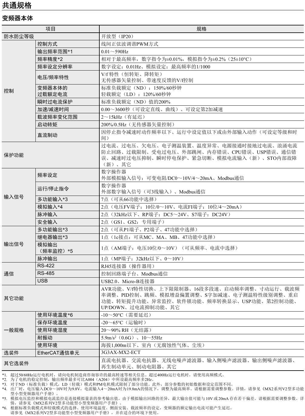 有关详细信息,请参阅产品样本及其他相关文件:MX2系列V2型 产品规格书