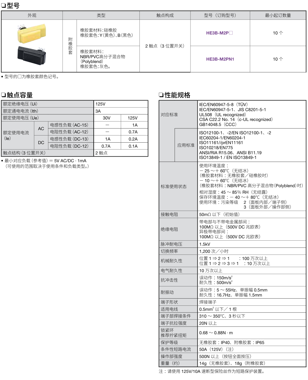 有关详细信息,请参阅产品样本及其他相关文件:HE3B型 使能开关
