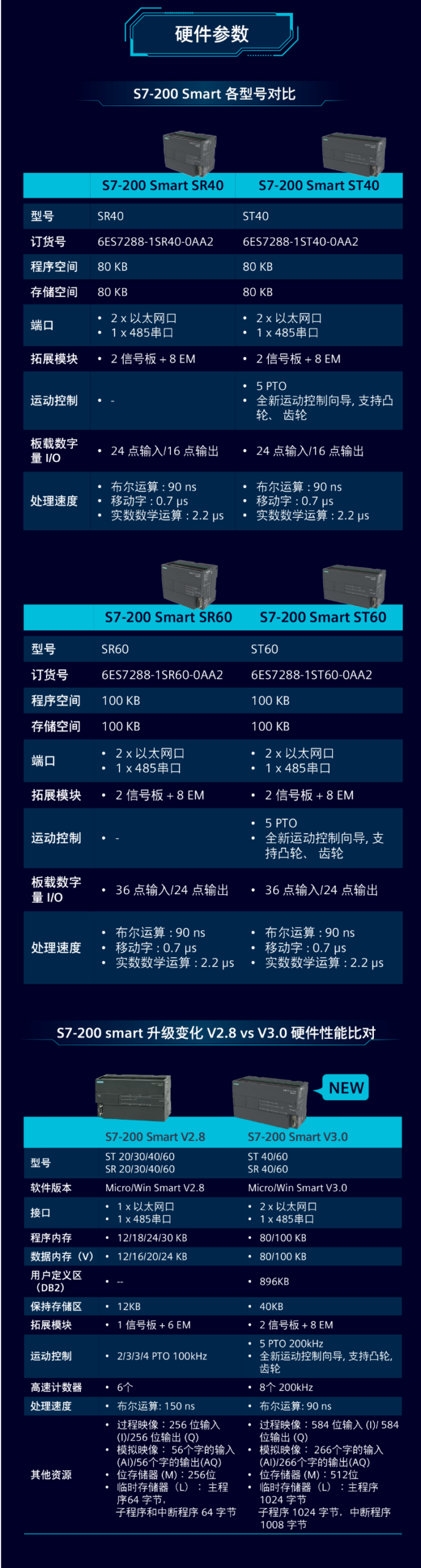 有关详细信息,请参阅产品样本及其他相关文件:S7-200 SMART V3.0可编程控制器产品样本