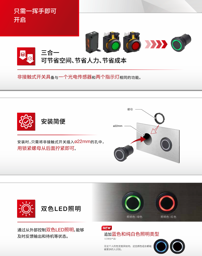 非接触式开关实现卫生措施,节省空间,节省工时,节省成本