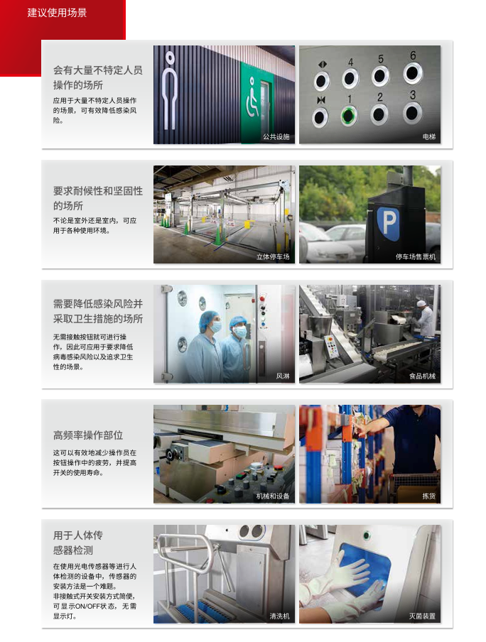- 非接触开关作为抑制感染的一种,可应用于多种场合。