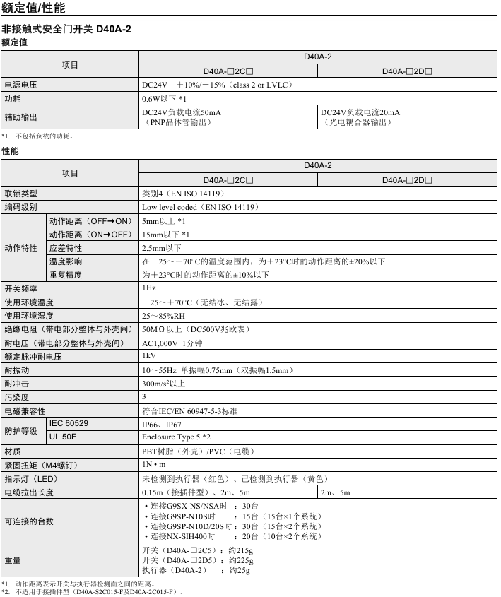 有关详细信息,请参阅产品样本及其他相关文件:D40A-2 产品样本