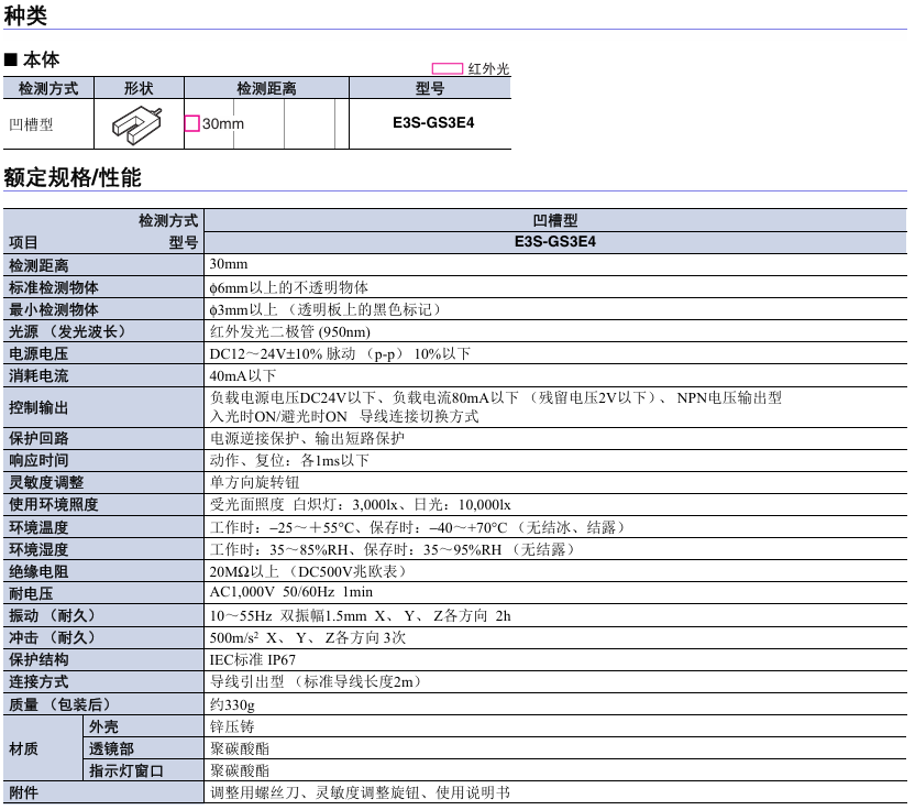 首页 欧姆龙 传感器 光电传感器 放大器内置型 E3S-GS3E4 槽型光电传感器 E3S-GS3E4 槽型光电传感器 对准光轴的槽型光电传感器 灵敏度高 传感器具有快速响应和高灵敏度,能够准确检测物体,减少误报和漏报。 易于调整与维护 通过单方向旋转钮可以轻松调整灵敏度,同时传感器结构紧凑,易于安装和维护。 有关详细信息,请参阅产品样本及其他相关文件:E3S-GS3E4 产品样本 分类: 放大器内置型 品牌: 欧姆龙 描述 用户评价 (0) 产品特点 产品信息 评价 目前还没有评价 成为第一个“E3S-GS3E4 槽型光电传感器” 的评价者取消回复您的邮箱地址不会被公开。 必填项已用 * 标注您的评级 * 评价… 完美 很好 普通 还行 极差 名称 *邮箱 *您的评价 * 在此浏览器中保存我的显示名称、邮箱地址和网站地址,以便下次评论时使用。 提交 相关产品 E3ZG内置放大器光电传感器 放大器内置型 E3Z-LS 距离设定型光电开关 放大器内置型 放大器内置型TOF激光传感器E3AS-HF系列 放大器内置型 距离设定型观点传感器E3AS-HL系列 放大器内置型