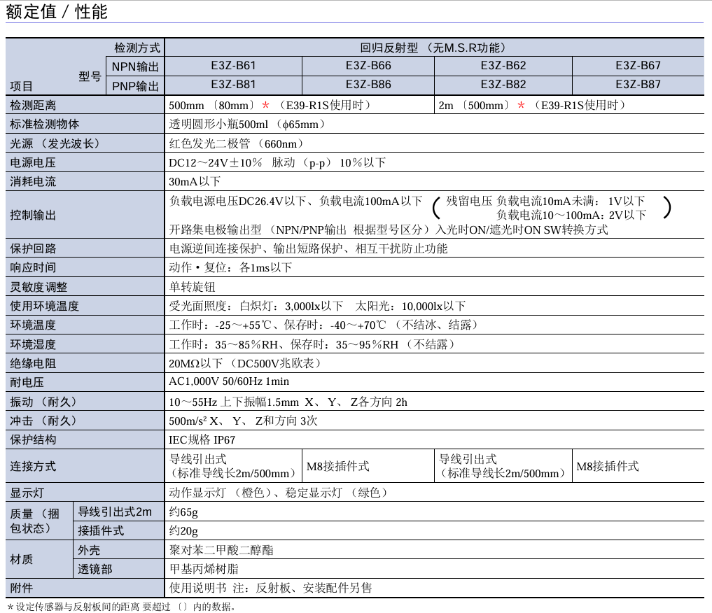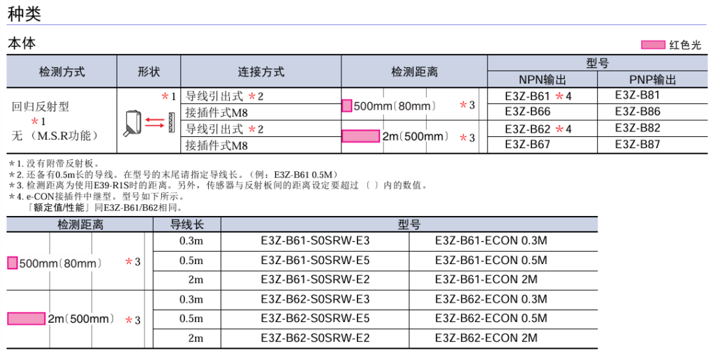 有关详细信息,请参阅产品样本及其他相关文件:E3Z-B 产品样本