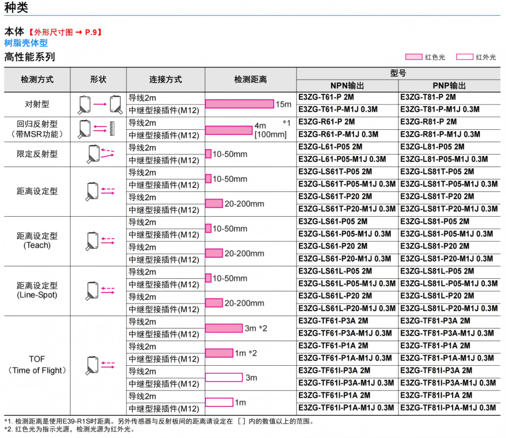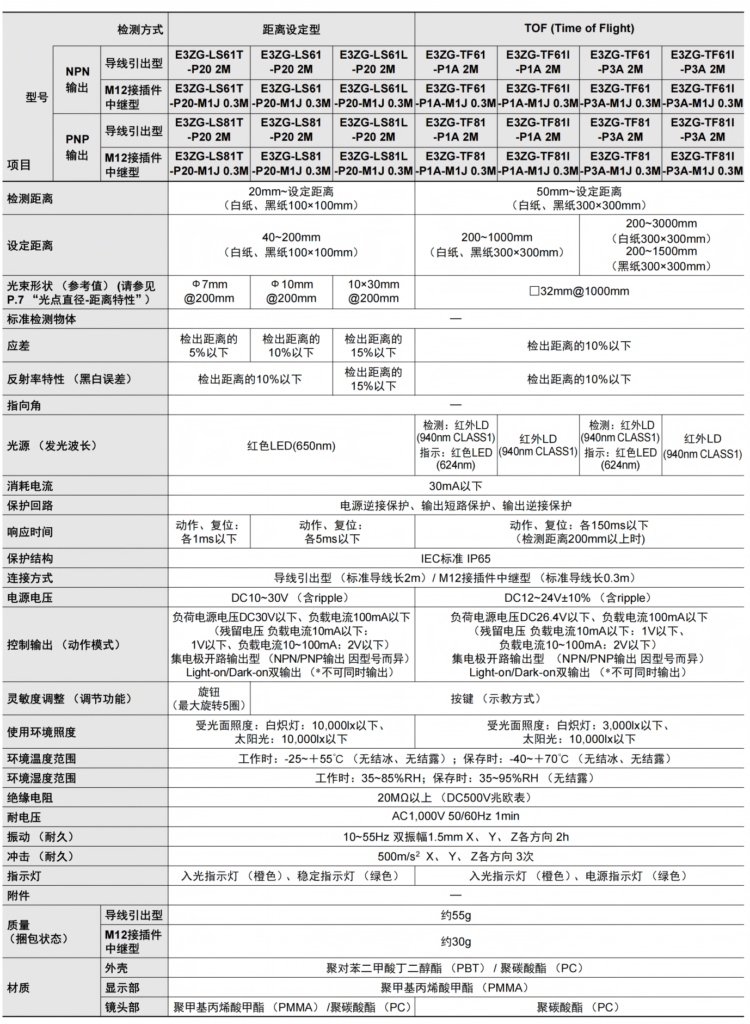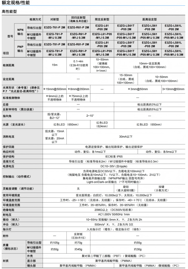 有关详细信息,请参阅产品样本及其他相关文件:E3ZG系列 产品规格书