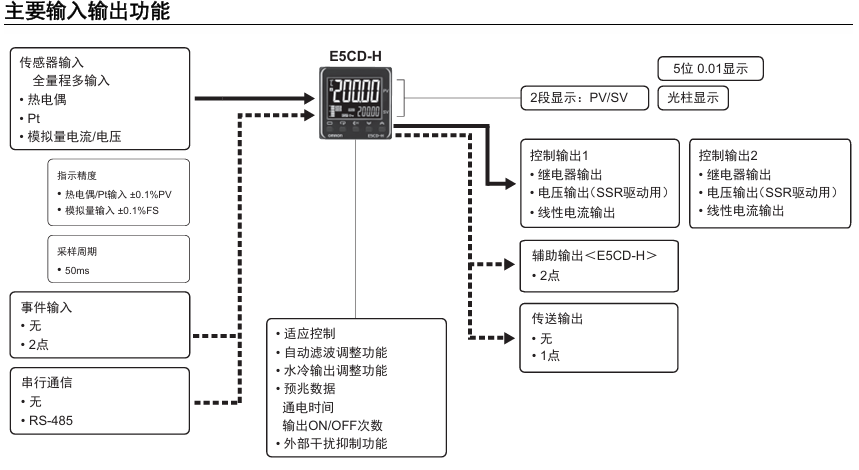 有关详细信息,请参阅产品样本及其他相关文件:E5□D/NX-TC 产品样本、E5CD/E5ED/E5CD-H/E5ED-H 产品规格书、NX-HTC/NX-TC/EJ1/E5DC-B/E5□D-H 产品样本