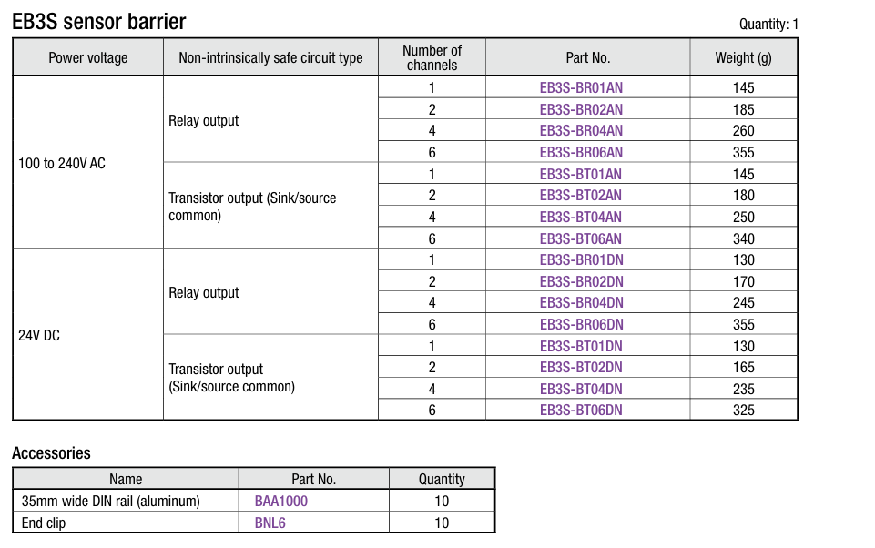有关详细信息,请参阅产品样本及其他相关文件:EB3S Sensor Barrier、EB3S系列传感器安全栅