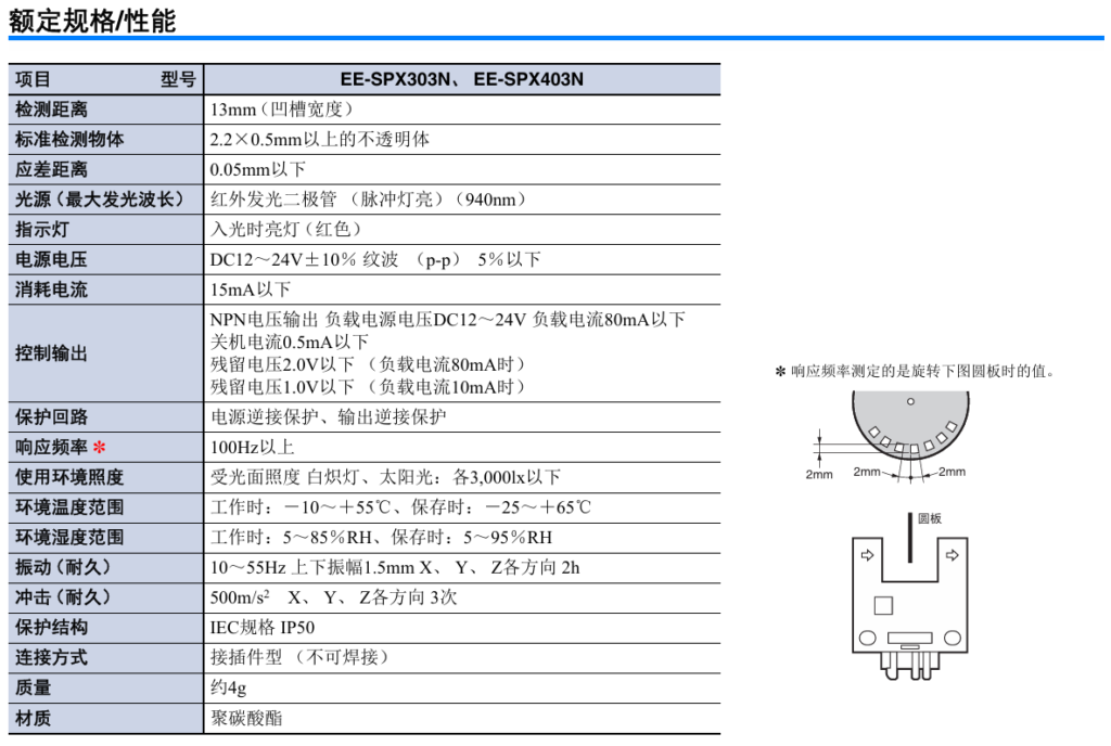 首页 欧姆龙 传感器 微型光电传感器 EE-SPX303N / SPX403N 宽幅凹槽型 EE-SPX303N / SPX403N 宽幅凹槽型 抗干扰光、抗噪音、 凹槽宽度达13mm的宽幅凹槽型 实现了与放大器内置型光电传感器同等的抗噪音性能 抗共态噪音性能达30倍以上(与以往产品相比) 抗逆变器噪音性能达10倍以上(与以往产品相比) 内置逆接保护回路 有关详细信息,请参阅产品样本及其他相关文件:EE-SPX303N/403N 产品样本 分类: 微型光电传感器 品牌: 欧姆龙 描述 用户评价 (0) 产品信息 评价 目前还没有评价 成为第一个“EE-SPX303N / SPX403N 宽幅凹槽型” 的评价者取消回复您的邮箱地址不会被公开。 必填项已用 * 标注您的评级 * 评价… 完美 很好 普通 还行 极差 名称 *邮箱 *您的评价 * 在此浏览器中保存我的显示名称、邮箱地址和网站地址,以便下次评论时使用。 提交 相关产品 EE-SX47 / SX67凹槽接插件式/导线引出型(直流光)*1 微型光电传感器 EE-SX97凹槽连接器型(直流光) 微型光电传感器 EE-SX95 微型光电传感器 微型光电传感器 EE-SX77 / SX87 薄型导线引出型(直流光) 微型光电传感器