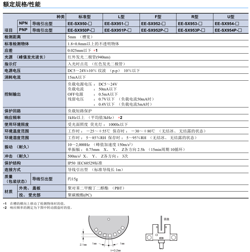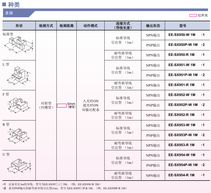 产品特点 价格便宜:通过优化生产时间实现成本的节省 对于常在1台装置上安装很多个微型光电传感器的用户。为了能让用户轻松使用, 标准价格比以往产品更低。 M2螺丝安装可能 可用M3/M2螺丝安装, 如果有已经用M2螺丝安装的传感器,也可方便地置换掉。 槽深同类中最大* 槽深度大, 检测物体不容易接触槽底, 机械设计时有更大的空间。 *据本公司2013年4月调查 确认插入深度的检测窗设置 插入槽中有标示检测窗口位置, 可目视看到检测物体是否遮住检测窗, 很简单就能确认插入深度 良好的可视性 最多可从4个方向确认的高亮度入光指示灯, 安装场所不受限制。 产品信息 评价 目前还没有评价 成为第一个“EE-SX95 微型光电传感器” 的评价者取消回复您的邮箱地址不会被公开。 必填项已用 * 标注您的评级 * 评价… 完美 很好 普通 还行 极差 名称 *邮箱 *您的评价 * 在此浏览器中保存我的显示名称、邮箱地址和网站地址,以便下次评论时使用。 提交
