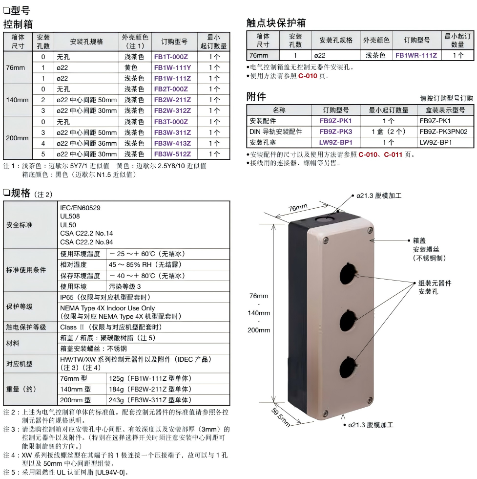 首页 和泉 人机界面 按钮开关 通用型电气控制箱 FB系列 树脂制电气控制箱 FB系列 树脂制电气控制箱 保护等级IP65的轻量树脂电气控制箱 保护等级为IP65 的轻量树脂控制箱。 开孔型可以安装ø22 系列的控制元器件。 另备有可以对孔的大小以及配置进行自由加工的无孔型。 无孔型可以在内部安装端子台,作为中转控制箱。 另备有紧急停止用的黄色外壳型,以及可使安装在面板的控制箱。 安装类型有直接安装/背面安装/卡钩安装/铝框安装。 有关详细信息,请参阅产品样本及其他相关文件:FB系列 树脂制电气控制箱 分类: 通用型电气控制箱 品牌: 和泉 描述 用户评价 (0) 产品信息 评价 目前还没有评价 成为第一个“FB系列 树脂制电气控制箱” 的评价者取消回复您的邮箱地址不会被公开。 必填项已用 * 标注您的评级 * 评价… 完美 很好 普通 还行 极差 名称 *邮箱 *您的评价 * 在此浏览器中保存我的显示名称、邮箱地址和网站地址,以便下次评论时使用。 提交 相关产品 KGN型 电气控制箱 通用型电气控制箱 AFSA型 脚踏开关 通用型电气控制箱 AGA型 电气控制箱 通用型电气控制箱 AGAW型 电气控制箱 通用型电气控制箱