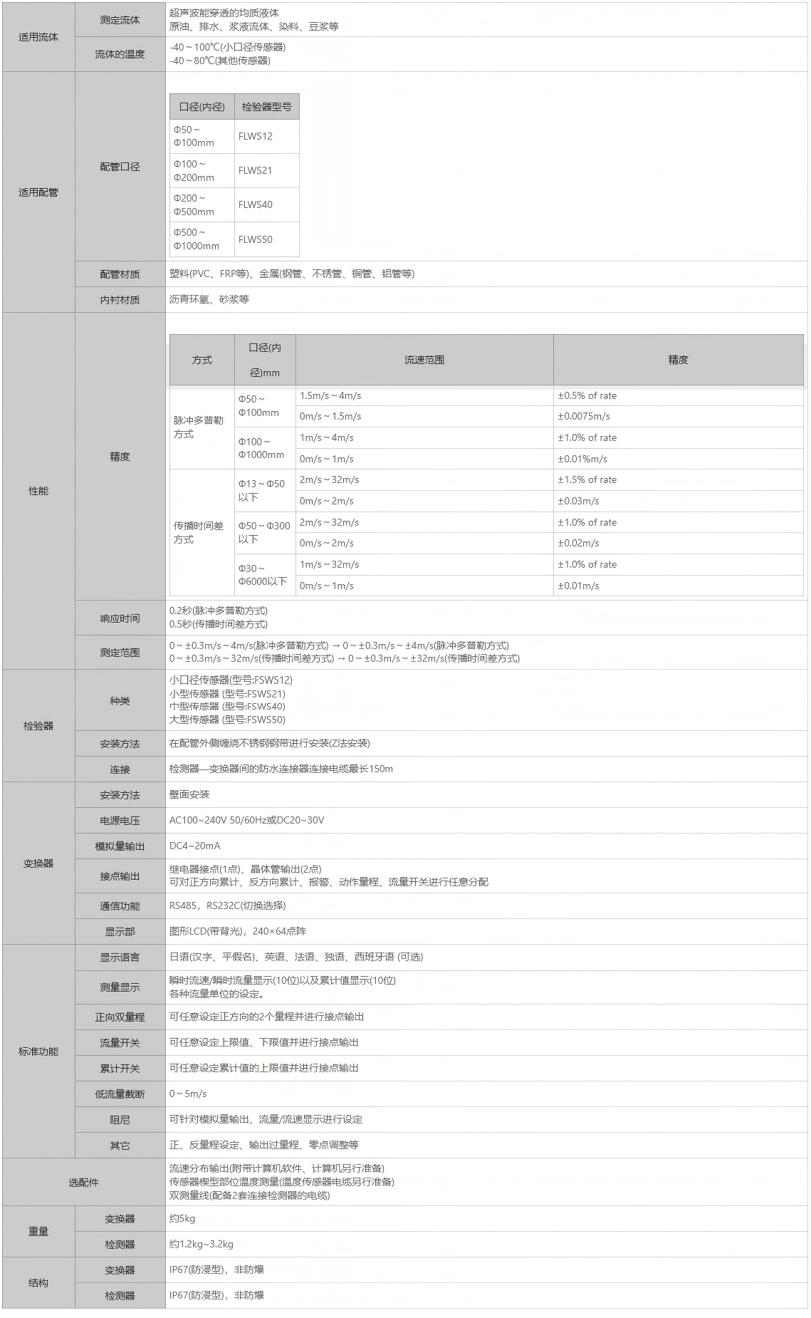 新式脉冲多普勒法与传播时间差法并用的新一代混合型超声波流量计(非接触式测量)能根据流体状态自动切换进行测量。