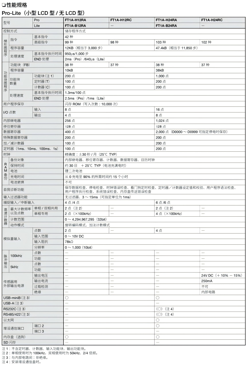 有关详细信息,请参阅产品样本及其他相关文件:SmartAXIS FT1A型可编程控制器