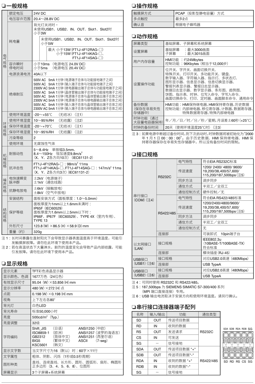 有关详细信息,请参阅产品样本及其他相关文件:FT1J / FT2J型 可编程显示器一体机