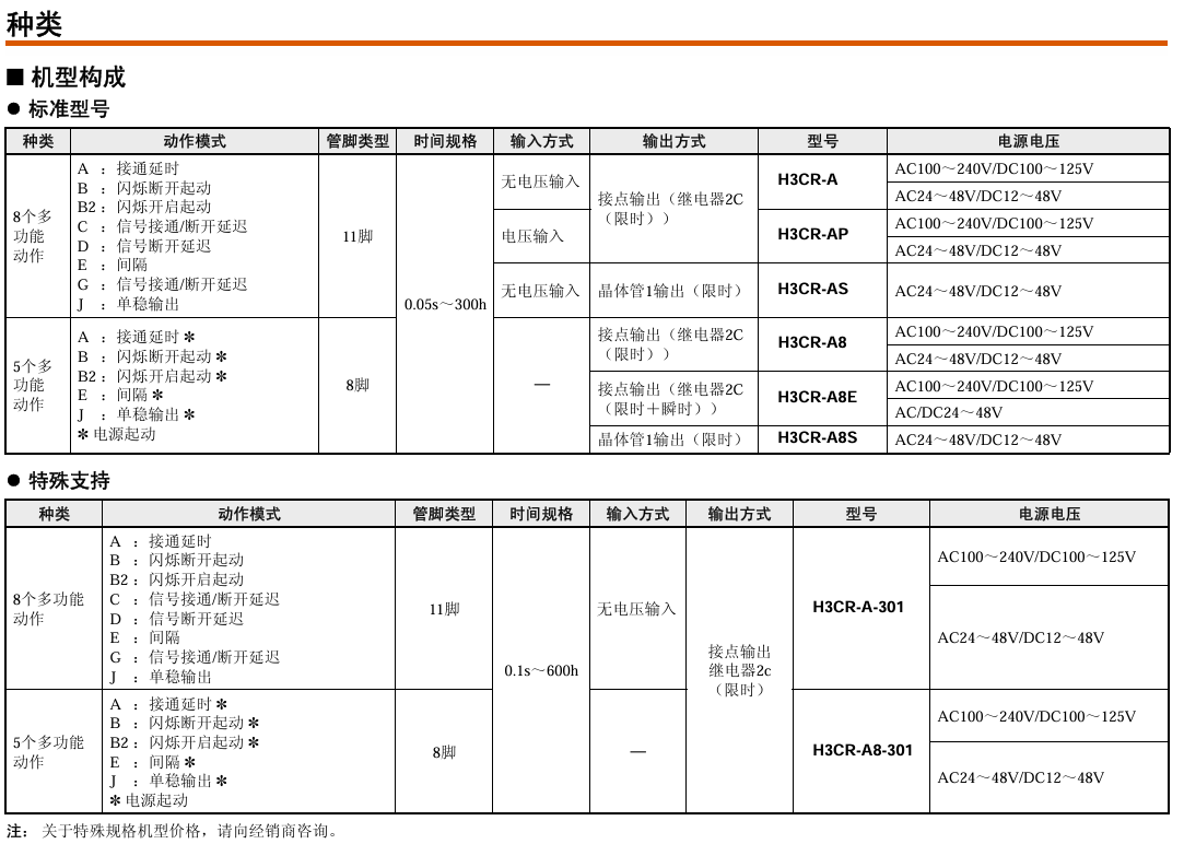 有关详细信息,请参阅产品样本及其他相关文件:H3CR 产品规格书、H3CR-A 产品样本、H3CR-□ 注意事项(H3CR系列部分产品预定于2022年3月底订货截止)
