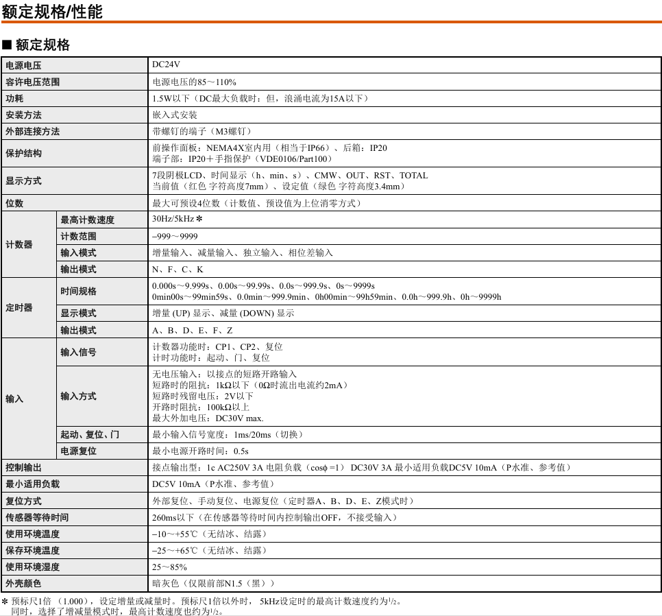 - 可切换预置计数器(4位数)、电子定时器(4位数)功能。