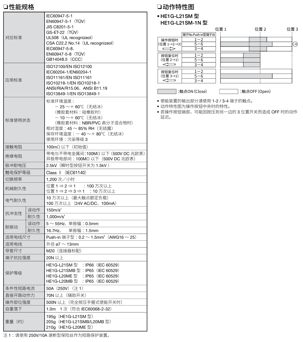 有关详细信息,请参阅产品样本及其他相关文件:HE1G-L型 手握式使能开关