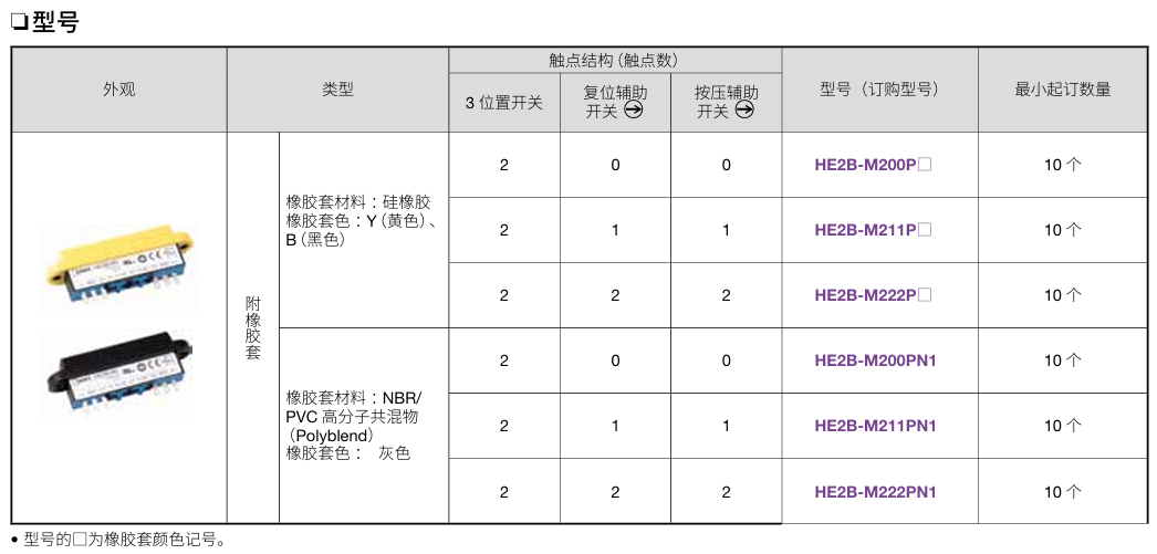 有关详细信息,请参阅产品样本及其他相关文件:HE2B型 使能开关
