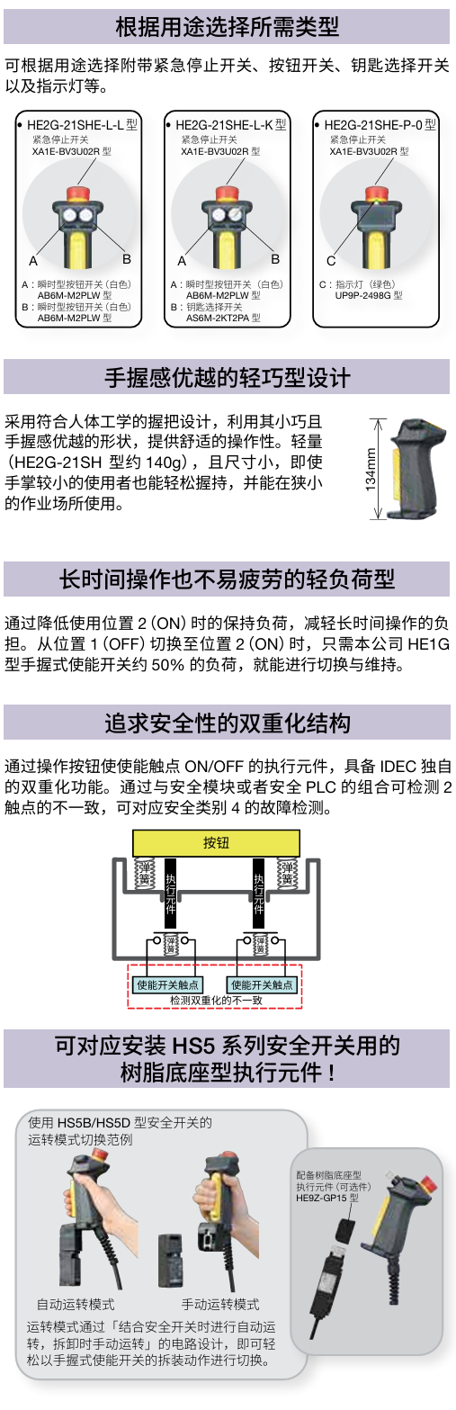 首页 和泉 安全防爆 安全设备 手握式使能开关 HE2G型 手握式使能开关 HE2G型 手握式使能开关 小型,轻量,手握感优越的手握式使能开关。 采用符合人体工学的握把设计,利用其小巧且手握感优越的形状,提供舒适的操作性。 长时间操作也不易疲累的轻负荷型。 具有顺畅且明显的按压感,能确实感受到3 个位置,可轻松辨识从位置1(OFF)切换至位置2(ON)的动作。 备有内部连接器与焊接端子型。 有关详细信息,请参阅产品样本及其他相关文件:手握式使能开关 HE2G型、HE2G型 手握式使能开关 使用说明书 分类: 手握式使能开关 品牌: 和泉 描述 用户评价 (0) 产品特点 产品信息 评价 目前还没有评价 成为第一个“HE2G型 手握式使能开关” 的评价者取消回复您的邮箱地址不会被公开。 必填项已用 * 标注您的评级 * 评价… 完美 很好 普通 还行 极差 名称 *邮箱 *您的评价 * 在此浏览器中保存我的显示名称、邮箱地址和网站地址,以便下次评论时使用。 提交 相关产品 HE1G-L型 手握式使能开关 手握式使能开关 手握式开关底座型执行元件 手握式使能开关
