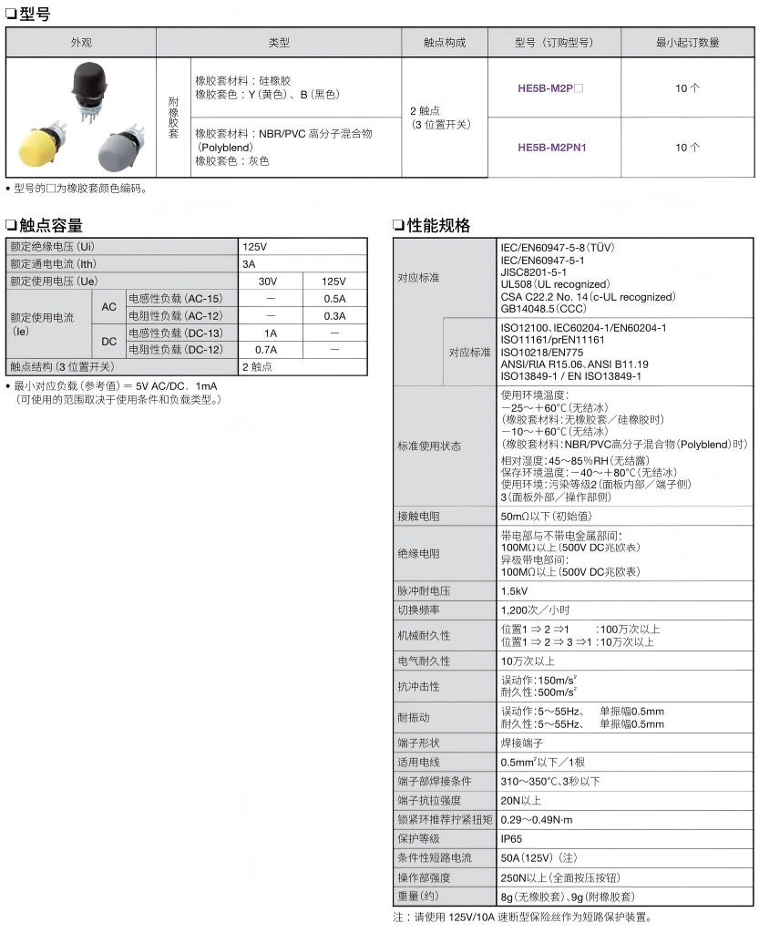 有关详细信息,请参阅产品样本及其他相关文件:HE5B型 使能开关、HE5B 使能开关 使用说明书