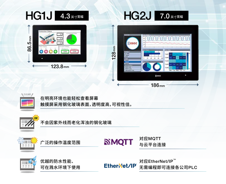 首页 和泉 自动化 可编程显示器 人机界面 HG1J型 可编程显示器(4.3英寸) HG1J型 可编程显示器(4.3英寸) 通过节省空间实现设备微型化,提高成本效益。 节省空间,可将盘柜尺寸设计的更小。 节省工时,采用抗振的Push-in连接方式的端子台,无需工具,接线简单。 玻璃屏兼具美观和功能性的时尚外观。 耐环境性优越, 广泛的适用于应用领域。 优越的连接性,易于使用的软件。 为设备的IoT化作贡献。 有关详细信息,请参阅产品样本及其他相关文件:HG1J/HG2J型 配备PCAP触摸屏的 可编程显示器 分类: 人机界面 品牌: 和泉 描述 用户评价 (0) 产品特点 产品信息 评价 目前还没有评价 成为第一个“HG1J型 可编程显示器(4.3英寸)” 的评价者取消回复您的邮箱地址不会被公开。 必填项已用 * 标注您的评级 * 评价… 完美 很好 普通 还行 极差 名称 *邮箱 *您的评价 * 在此浏览器中保存我的显示名称、邮箱地址和网站地址,以便下次评论时使用。 提交 相关产品 HG1G型 可编程显示器(4.3英寸) 人机界面 HG5G-V型 可编程显示器(15英寸) 人机界面 HG3G-V8型 可编程显示器(8.4英寸) 人机界面 HG4G-V型 可编程显示器(12.1英寸) 人机界面