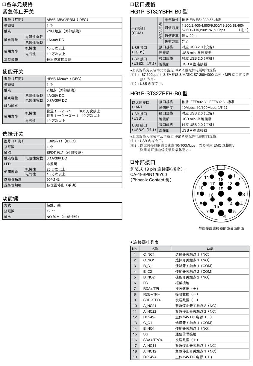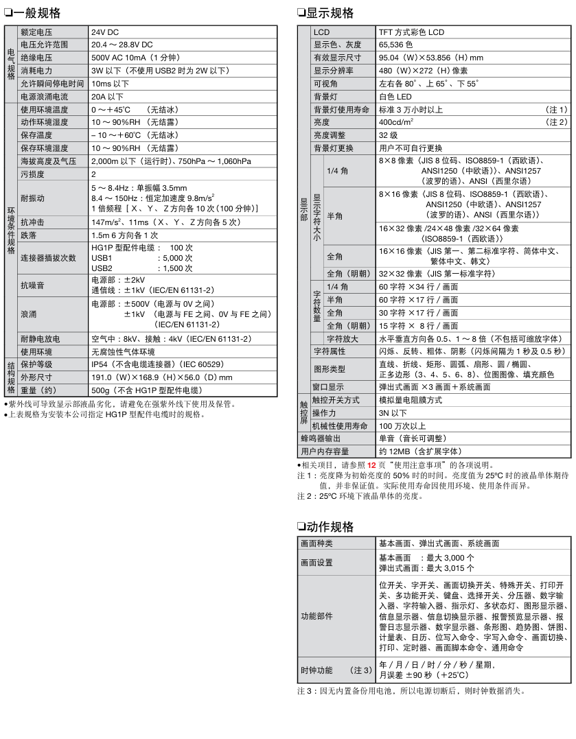 有关详细信息,请参阅产品样本及其他相关文件:HG1P型 示教器