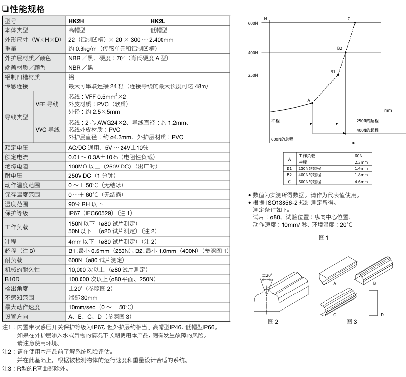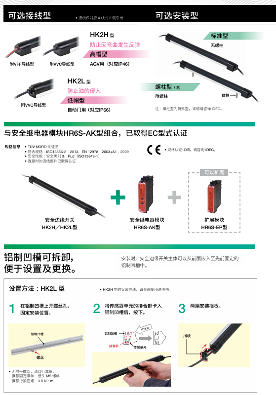 有关详细信息,请参阅产品样本及其他相关文件:安全边缘开关HK2H/HK2L型样本