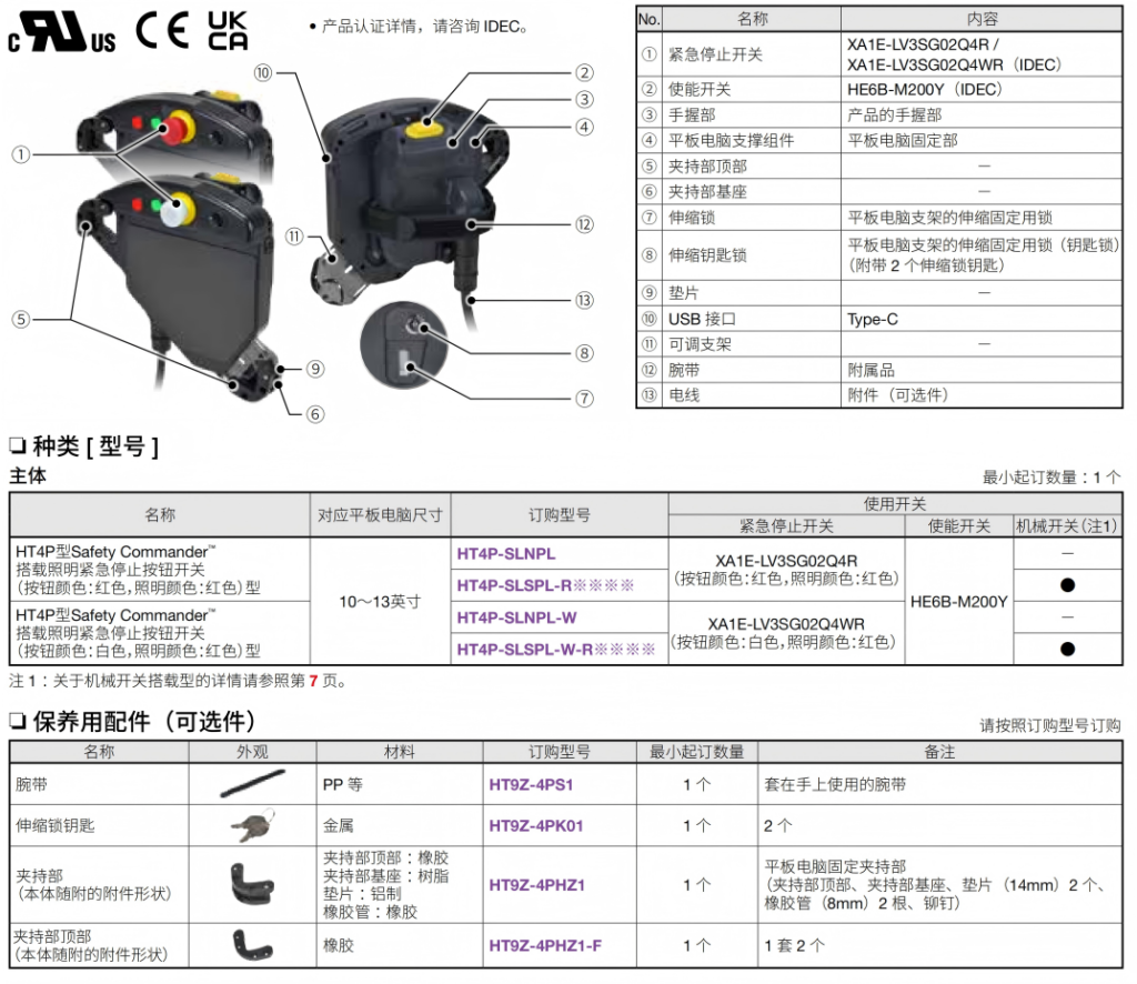 有关详细信息,请参阅产品样本及其他相关文件:HT4P 型平板电脑安装用安全设备