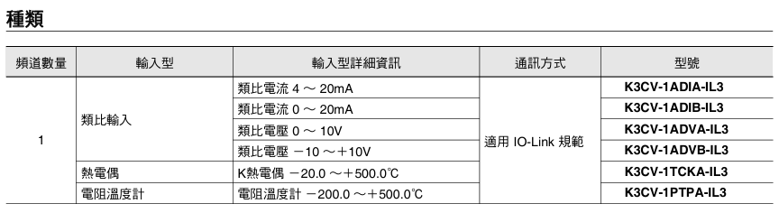 产品特点 IO-Link 通信简化了设备设计和设备配置 透过将模拟传感器的信号转换为 IO-Link 的方式,即可利用数码信号传送处理资料,藉此减少包含控制面板及设备等的配线成本及工时。 提升装置设计及设备配置的灵活性。 有效精简控制面板及设备之间的配线 过去若要连接控制面板内的控制器以及设备端的模拟传感器,必须拉设大于传感器数量的缆线。只要将 K3CV 和 IO-Link 主机模块互相连接,即可减少控制面板与设备之间的配线。 备有多种配件,支持各种连接方式 亦考量到现场的易用性 设置更简便、可立即使用 1/8 圈 Smartclick,无需使用工具即可轻松连接。 更能一目了然 采用可视性绝佳的 LED 指示灯,告知动作状态/错误。利用铭板,简化装置管理。 产品信息 评价 目前还没有评价 成为第一个“K3CV IO-Link AD转换器” 的评价者取消回复您的邮箱地址不会被公开。 必填项已用 * 标注您的评级 * 评价… 完美 很好 普通 还行 极差 名称 *邮箱 *您的评价 * 在此浏览器中保存我的显示名称、邮箱地址和网站地址,以便下次评论时使用。 提交