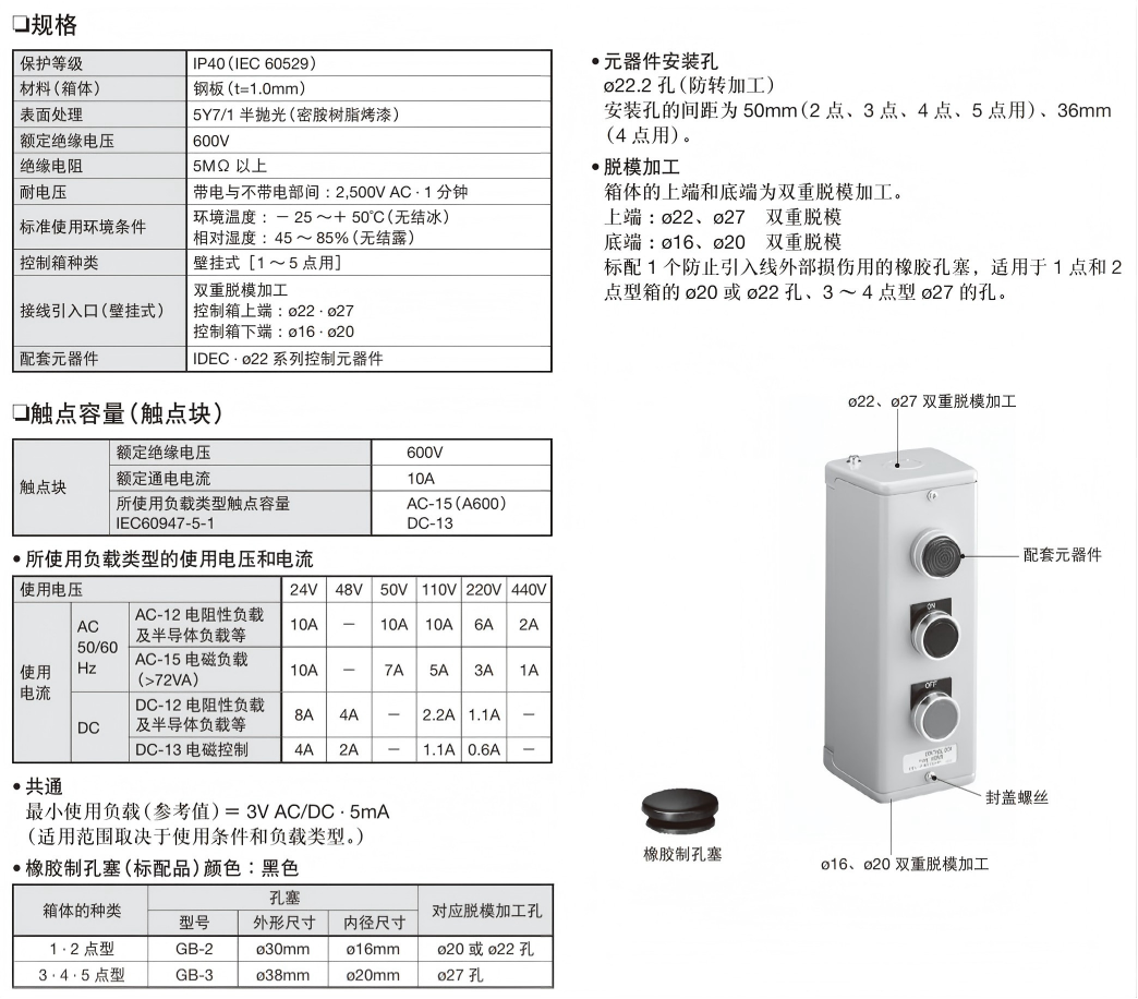 首页 和泉 人机界面 按钮开关 通用型电气控制箱 KGNW型 电气控制箱 KGNW型 电气控制箱 封闭型( IP40)·钢板制电气控制箱。采用省空间 ø22 TW 系列控制元器件 封闭型( IP40)·钢板制电气控制箱。 ø22 控制元器件标配型电气控制箱。 可选择 1 〜 4 点标配各种规格(触点结构、电压、颜色、标记牌等)控制元器件的标准型电气控制箱。 也可根据用途,从,ø22系列中自由选择元器件组合控制箱。 有关详细信息,请参阅产品样本及其他相关文件:KGNW型 电气控制箱 分类: 通用型电气控制箱 品牌: 和泉 描述 用户评价 (0) 产品信息 评价 目前还没有评价 成为第一个“KGNW型 电气控制箱” 的评价者取消回复您的邮箱地址不会被公开。 必填项已用 * 标注您的评级 * 评价… 完美 很好 普通 还行 极差 名称 *邮箱 *您的评价 * 在此浏览器中保存我的显示名称、邮箱地址和网站地址,以便下次评论时使用。 提交 相关产品 KGN型 电气控制箱 通用型电气控制箱 AGS型 电气控制箱 通用型电气控制箱 AFSA型 脚踏开关 通用型电气控制箱 AGAW型 电气控制箱 通用型电气控制箱