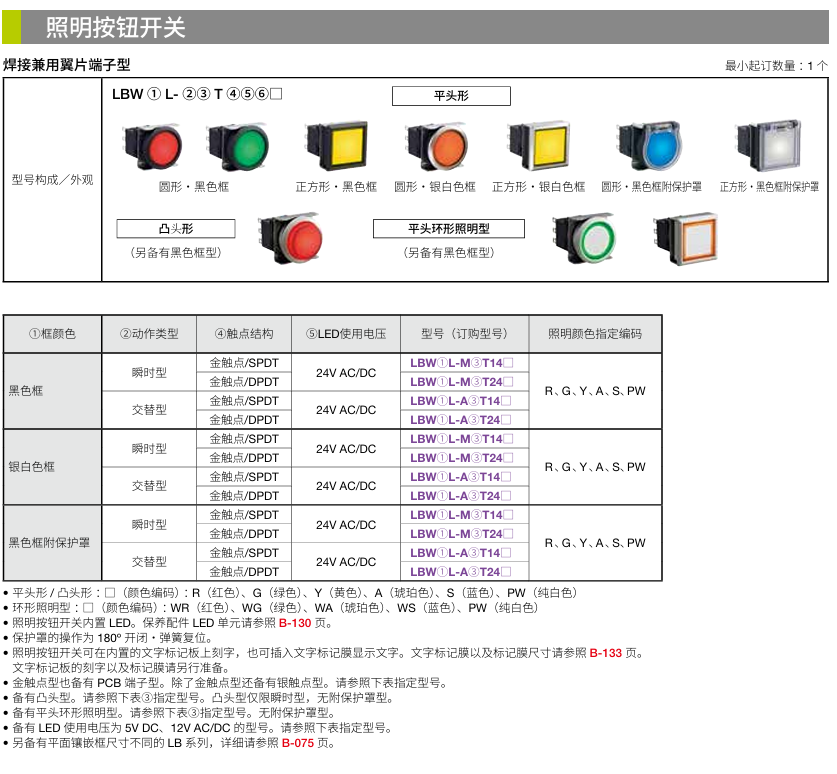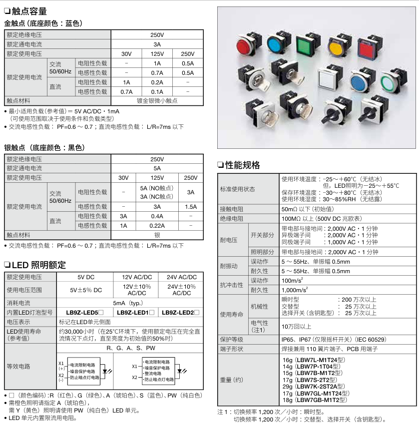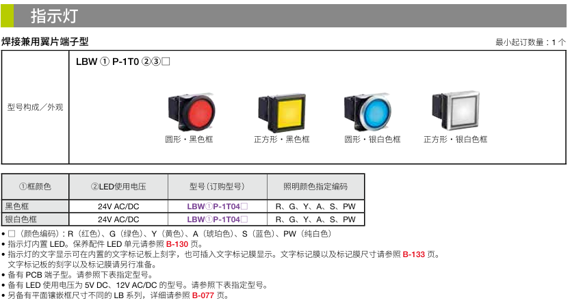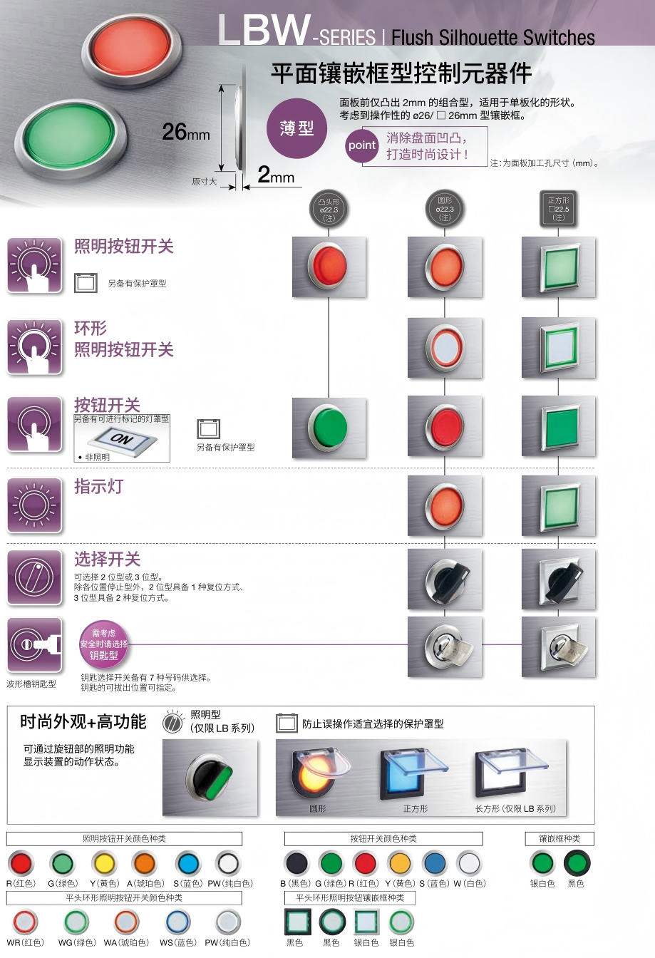 有关详细信息,请参阅产品样本及其他相关文件:LB/LBW系列 平面镶嵌框型控制元器件 LB系列 ø16 控制元器件