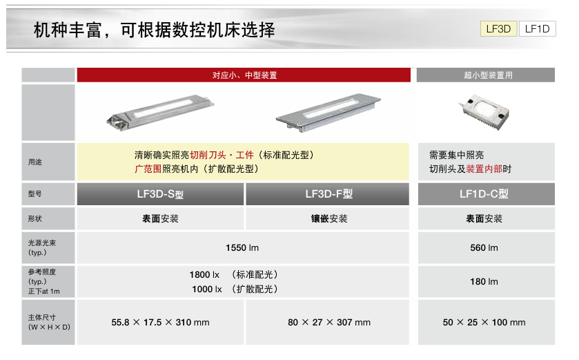 - 适合工作机床可选择的2种配光:标准配光、扩散配光。