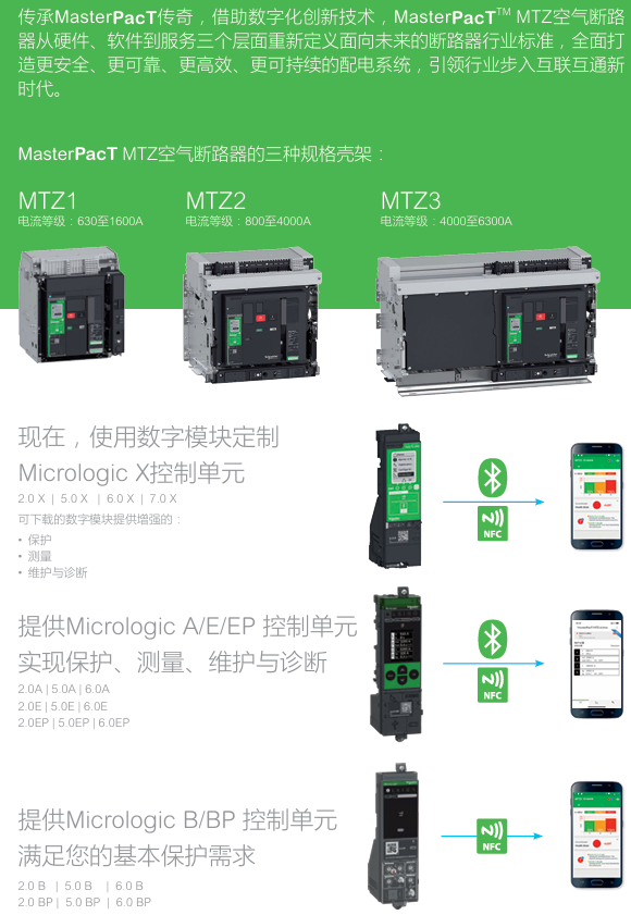 首页 施耐德 低压配电产品设备 断路器及开关 空气断路器 Masterpact MTZ空气断路器 Masterpact MTZ空气断路器 首款数字化空气断路器 MasterPacT MTZ 空气断路器具备更加出众的性能和互联性,全面满足配电需求。 电流范围:630 A至6300 A 有关详细信息,请参阅产品样本及其他相关文件:Masterpact™ MTZ 低压空气断路器和隔离开关产品目录、Masterpact MTZ空气断路器 | Schneider Electric 分类: 空气断路器 标签: schhome 品牌: 施耐德 描述 用户评价 (0) 产品特点 在IoT物联网时代,EcoStruxure™ 配电是开发高安全性、高可用性、高能效配电系统的可信和安全平台。MasterPacT™ MTZ空气断路器内置EcoStruxure创新,将可扩展性、耐用性和互联性结合在一起,创造了一台无缝和灵活的断路器,积极地帮助您节省时间、提高效率并改善能源消耗。 产品信息 评价 目前还没有评价 成为第一个“Masterpact MTZ空气断路器” 的评价者取消回复您的邮箱地址不会被公开。 必填项已用 * 标注您的评级 * 评价… 完美 很好 普通 还行 极差 名称 *邮箱 *您的评价 * 在此浏览器中保存我的显示名称、邮箱地址和网站地址,以便下次评论时使用。 提交 相关产品 Ø22 进口金属按钮指示灯 Harmony XB4 按钮、开关、指示灯、按钮盒及主令 iC65小型断路器 微型断路器 PowerPact 塑壳断路器 塑壳断路器