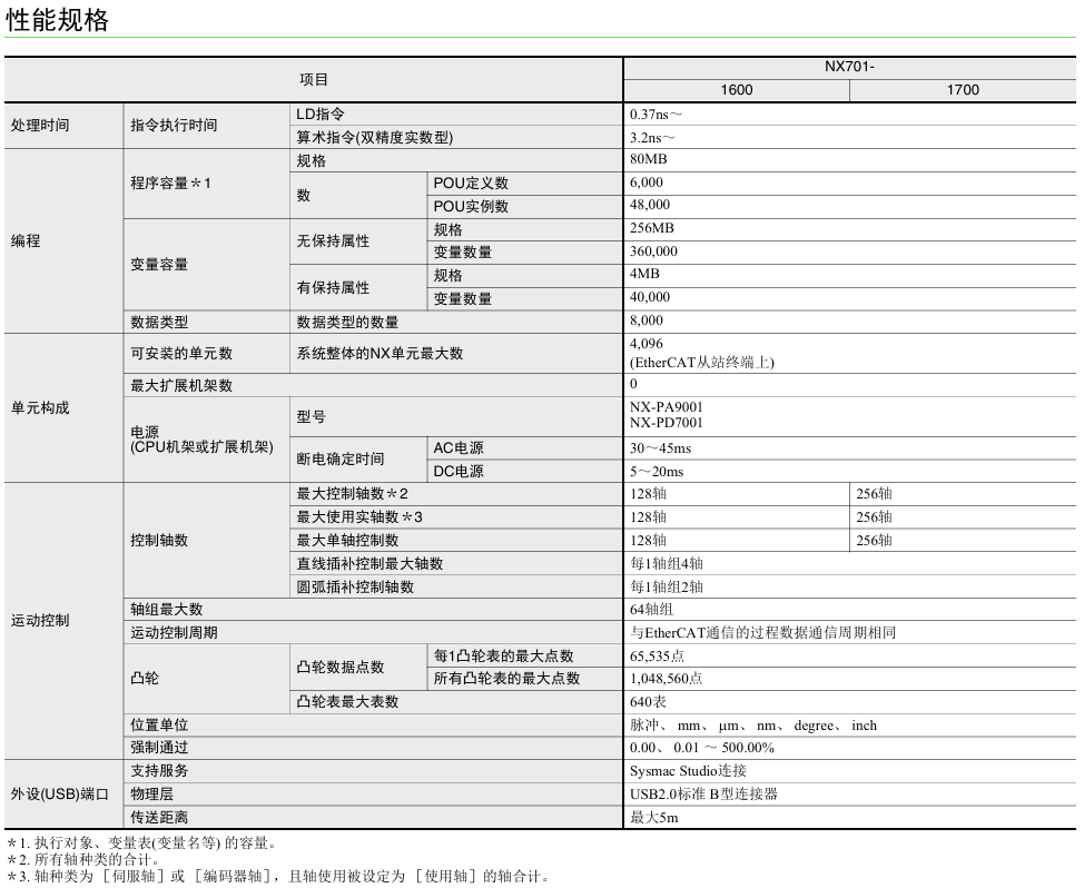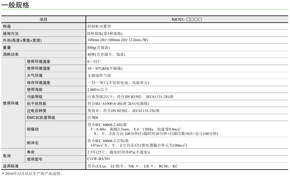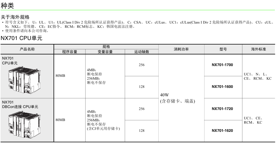 有关详细信息,请参阅产品样本及其他相关文件:NX701-□□□□ 产品规格书Sysmac 新产品速报
