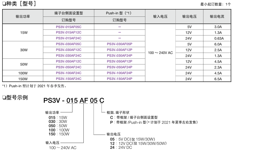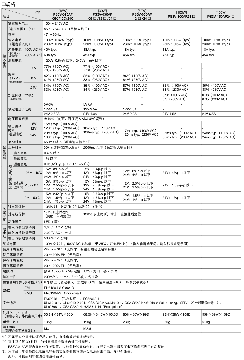 有关详细信息,请参阅产品样本及其他相关文件:PS3V 型 开关电源、PS3V 型 开关电源 使用说明书