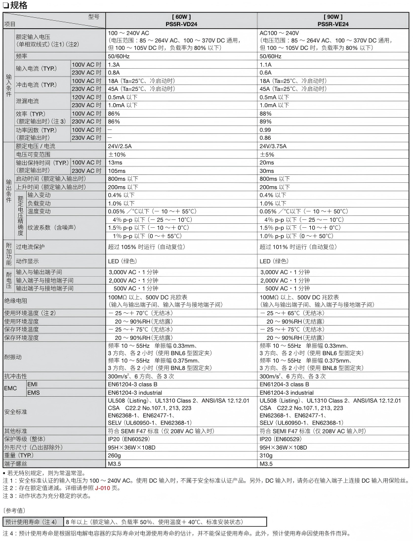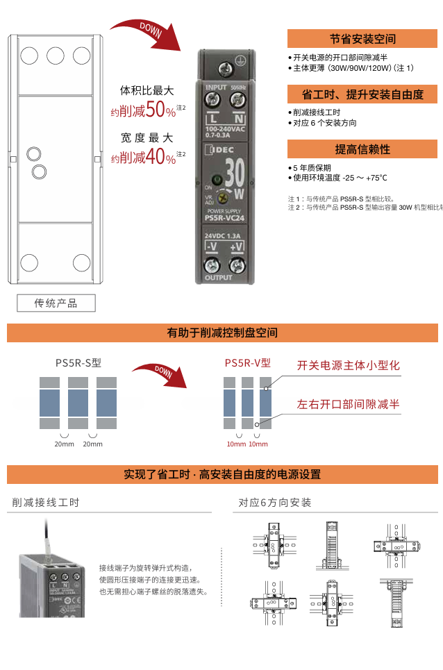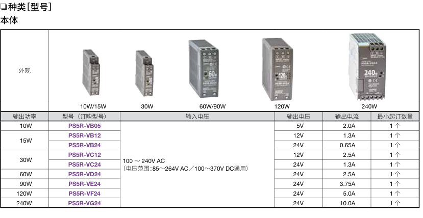 有关详细信息,请参阅产品样本及其他相关文件:PS5R-V型 开关电源、PS5R-V系列 使用说明书