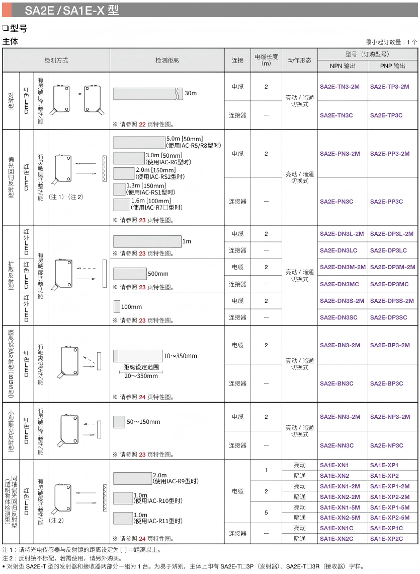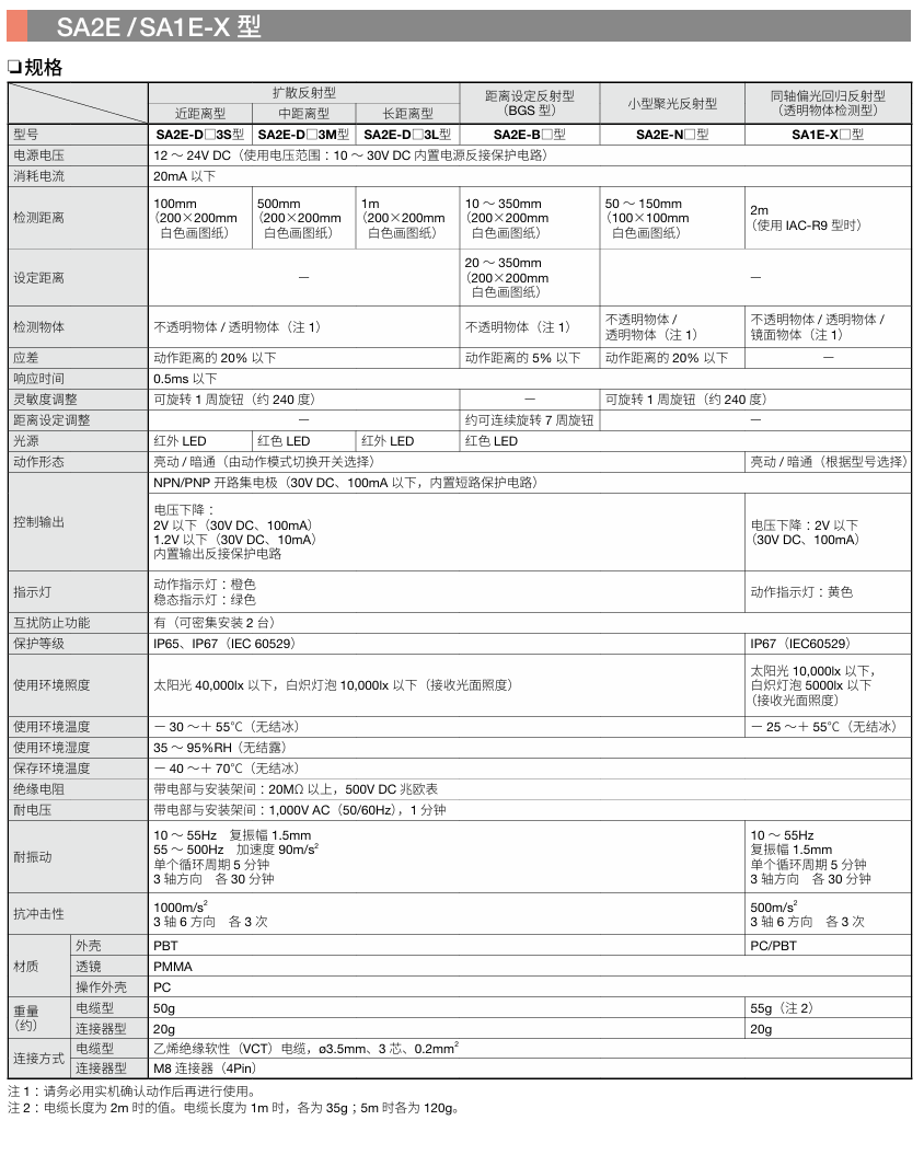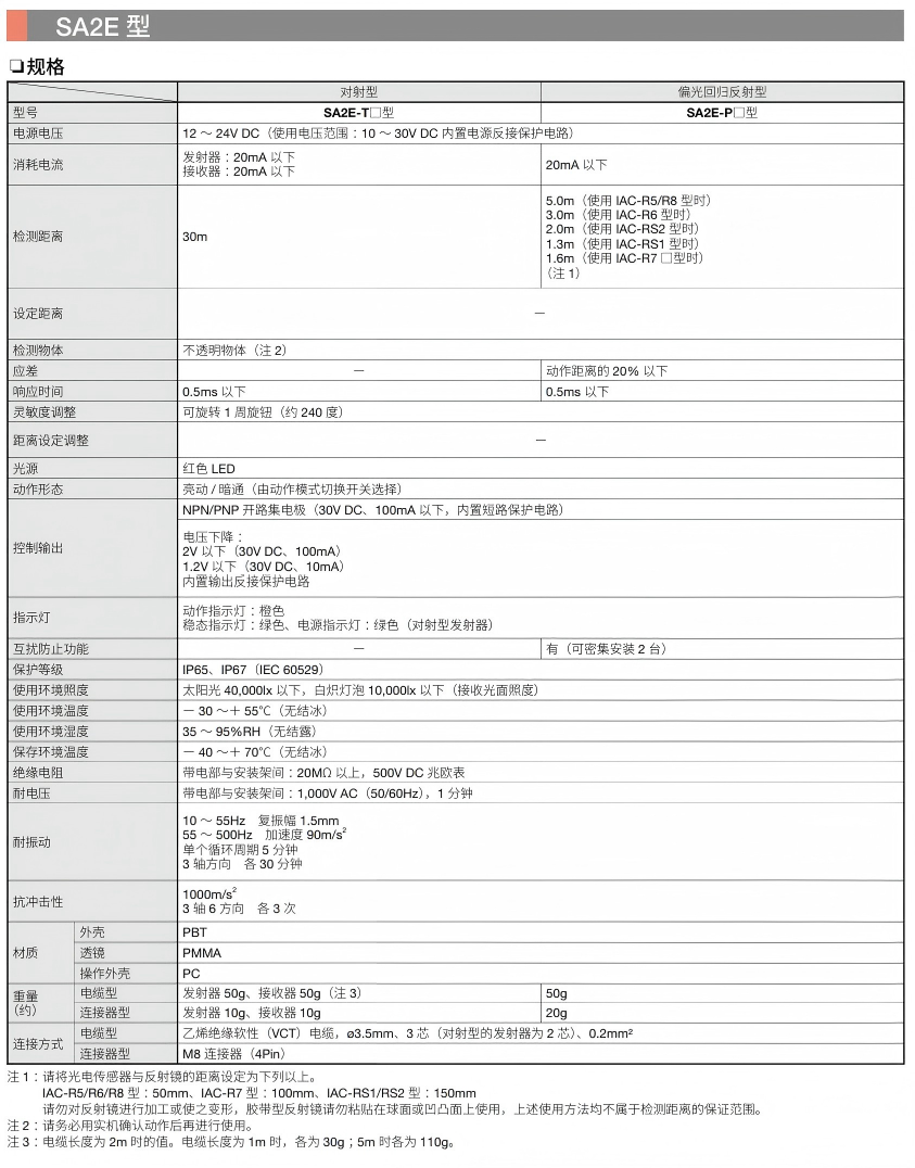 有关详细信息,请参阅产品样本及其他相关文件:SA2E/SA1E/SA1E-L型 放大器内置型小型光电传感器/激光传感器