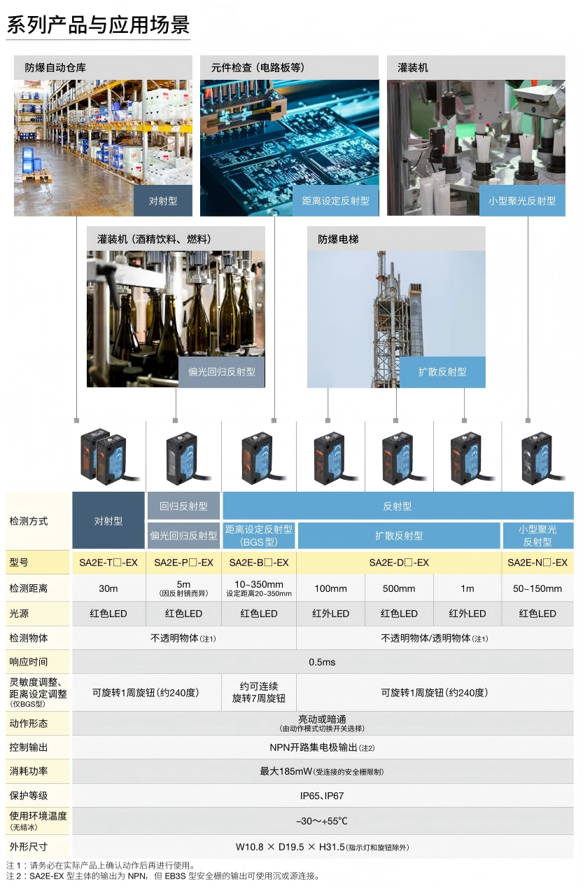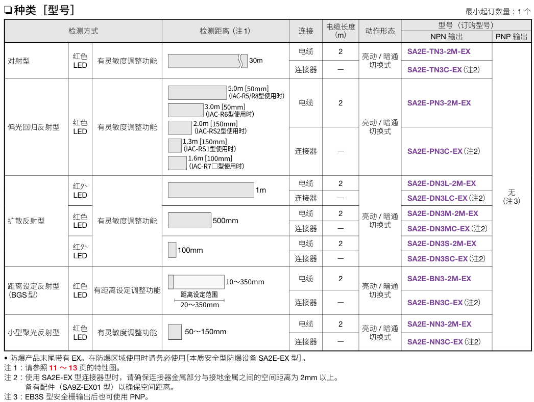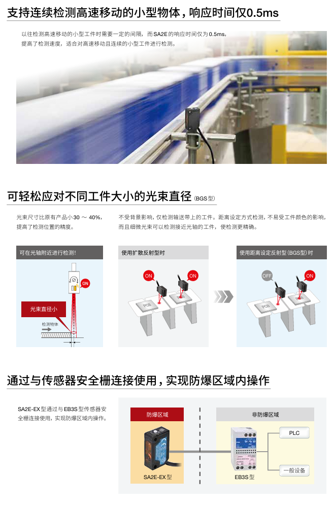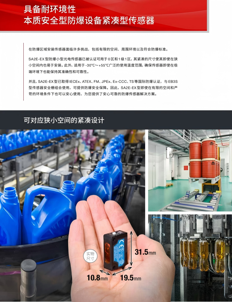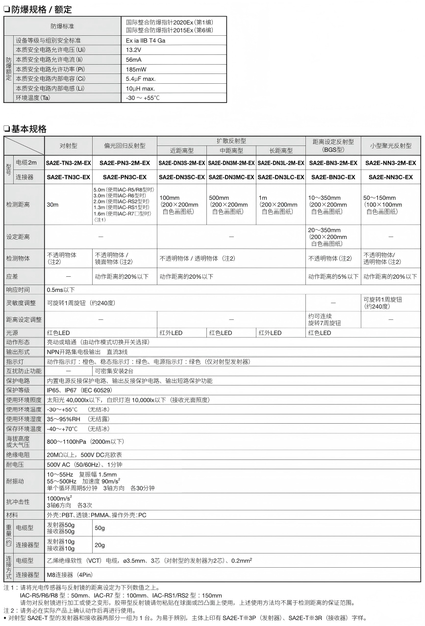有关详细信息,请参阅产品样本及其他相关文件:SA2E-EX型 本质安全型防爆结构 放大器内置式小型光电传感