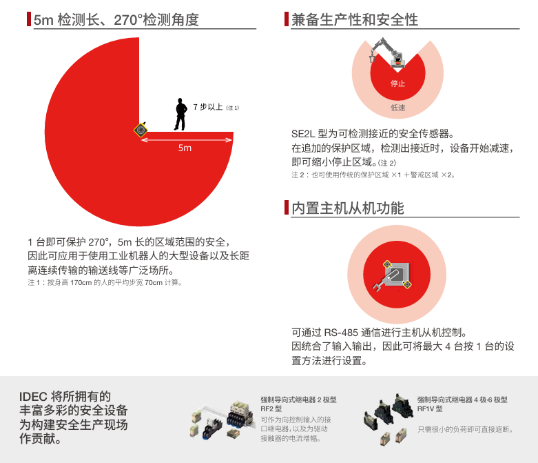 首页 和泉 安全防爆 安全设备 安全激光扫描器 SE2L型 安全激光扫描仪 SE2L型 安全激光扫描仪 一台即可实现广角(270度)和长距离(5米)的安全防护 1台即可保护270°,5m长的区域范围的安全。 内置主机从机功能,可通过RS-485通信进行主机从机控制,可将最大4台按1台的设置方法进行设置。 双重保护功能,可分别监视2 个危险区域的入侵,使机械停止。 可确保最大32 种区域组的安全。 考虑用户界面的设置,配载支持维修保养,具备多彩功能的专用设定软件。 有关详细信息,请参阅产品样本及其他相关文件:SE2L型安全激光扫描器 分类: 安全激光扫描器 品牌: 和泉 描述 用户评价 (0) 产品特点 产品信息 评价 目前还没有评价 成为第一个“SE2L型 安全激光扫描仪” 的评价者取消回复您的邮箱地址不会被公开。 必填项已用 * 标注您的评级 * 评价… 完美 很好 普通 还行 极差 名称 *邮箱 *您的评价 * 在此浏览器中保存我的显示名称、邮箱地址和网站地址,以便下次评论时使用。 提交 相关产品 SE2L进阶版 安全激光扫描仪 安全激光扫描器